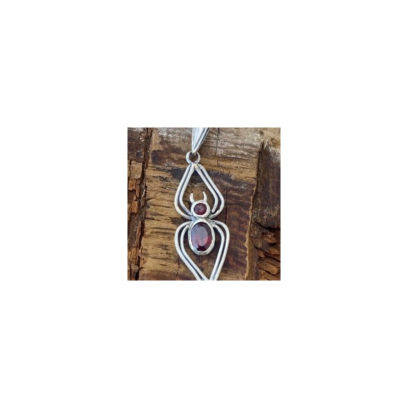 DescripciónDije Araña con Granates en plata 925!Metal: Plata fina ley 925Piedra: Granate NaturalTodos nuestros productos son originales y hecho a mano por nosotros en plata fina.